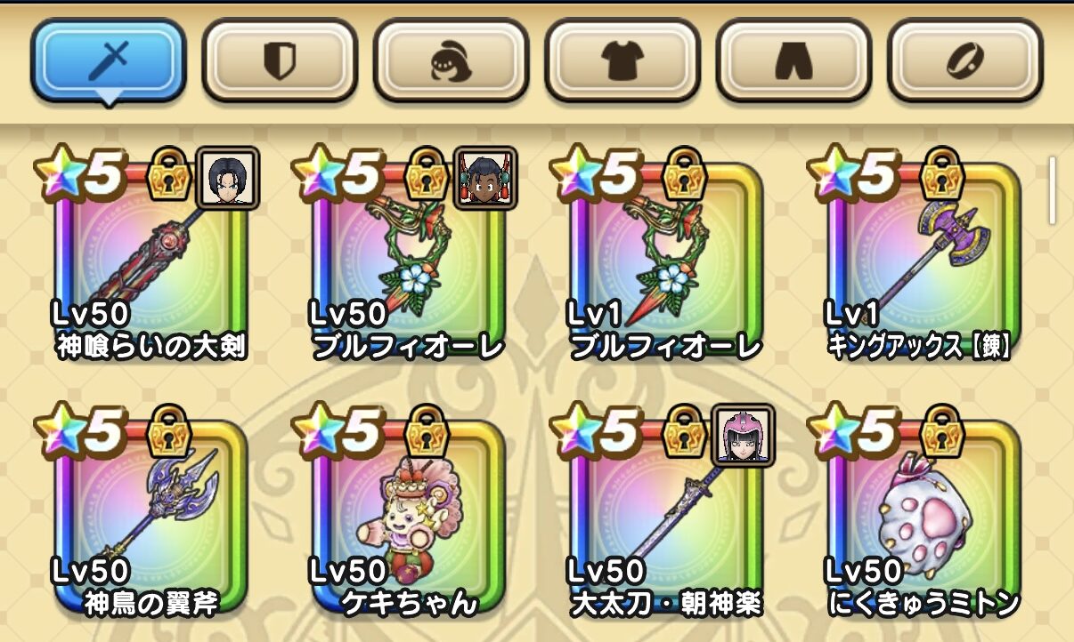 そして、久しぶりに私の現在の武器所持状況を紹介するとこんな感じ。