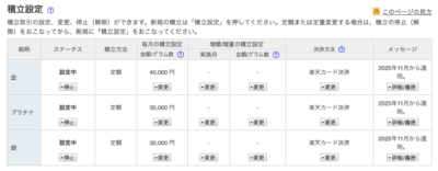 冒頭に載せた記事でも書いた通り銀とプラチナもサテライトで持ちたいので、このように積立にて組み入れることに。