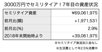 ※こちらは独身時代に貯めた3000万円のセミリタイア資金のみとなっておりますので、それ以外の資産(その他預貯金、iDeCo、結婚後に築いた資産、夫の個人資産)は含まれておりません