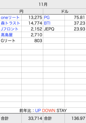 11月はリート系とデパート系が主なラインナップとなっておりますが、デパート系は配当金は少ないもののやはり優待が優秀なのでおすすめです。