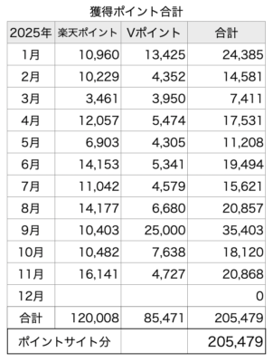 今年はあと1ヶ月分残っていますが、目標の年間20万ポイントは超えたようです。