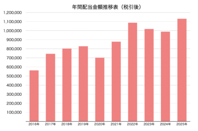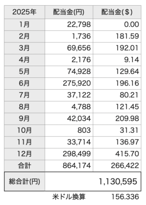 ということで、2025年に得られた不労所得(税引後ベース)は・・・