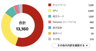 1月に獲得した楽天ポイントの内訳