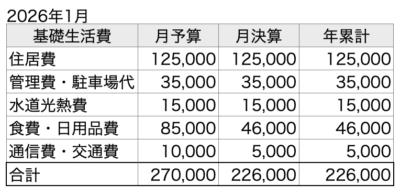 2026年1月時点の年間収支進捗状況