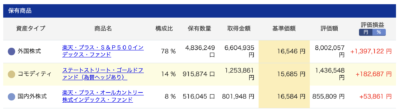ただ、このタイミングでゴールドの比率を上げてみました。